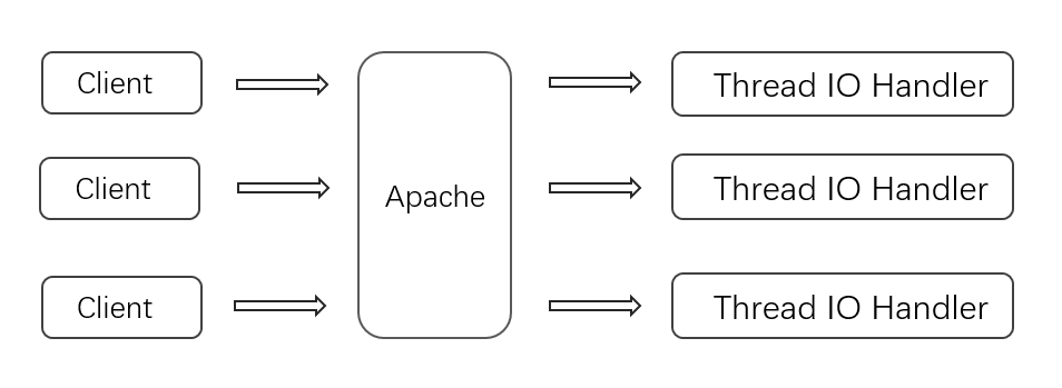实例:Apache网络通信模型(并发量不高,各个IO处理相互隔离)