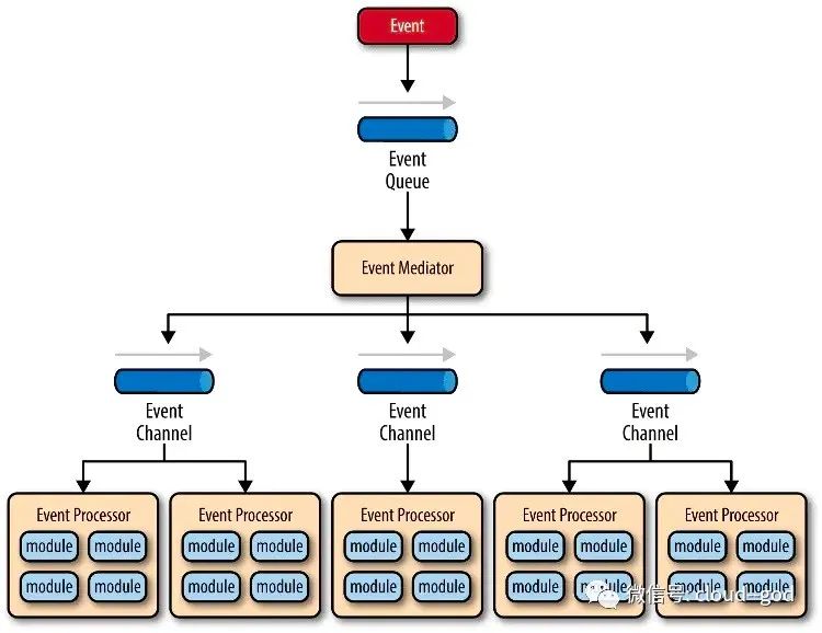 事件处理器(Event Processor):实现业务逻辑,处理完成后会发出事件,触发下一步操作
