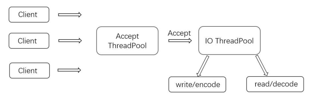 父线程与子线程的数据交互简单职责明确,父线程只需要接收新连接,子线程完成后续的业务处理
