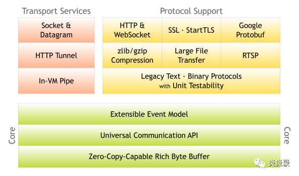 从图中也可以看到,上面讲优势的时候基本都提到了各组件,后续我会出一个系列文章来聊一下什么是NIO、TCP的拆包粘包、零拷贝、内存池、Reactor设计模式、流量整形等基础原理性的东西。