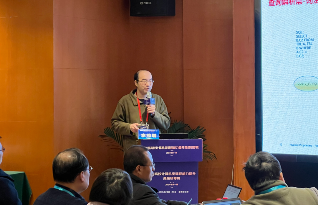 2024年1月23日至24日,全国高校计算机类课程能力提升高级研修班(2024年第一期)在广东省东莞市松山湖召开,来自全国119所高校的200多位教师参加了此次培训。本次研修班由教育部高等学校计算机类专业教学指导委员会和全国高等学校计算机教育研究会主办、清华大学出版社与华为公司共同协办。