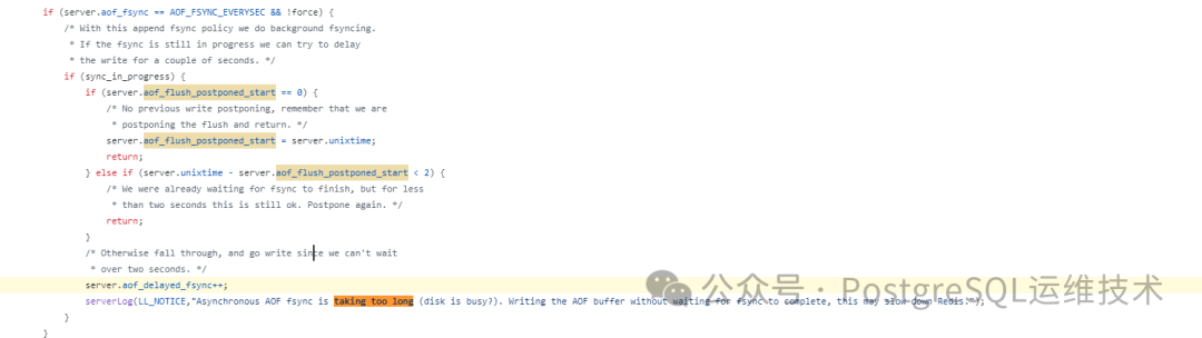 主线程在处理业务读写操作时会去对比上次AOF同步时间,没有正在完成的fsync或者有fsync正在执行,但执行时间不超过2秒,主线程继续操作。如果执行时间超过了2秒,主线程将会阻塞,直到上次的同步操作完成。