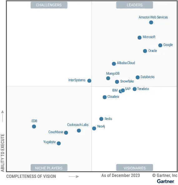 在 2023 年 Gartner 最新的魔力象限评估中,AWS 再次被评为云数据库管理系统的顶级厂商之一。AWS 在在线事务处理(OLTP)的关系型数据库领域提供了两个主要产品: