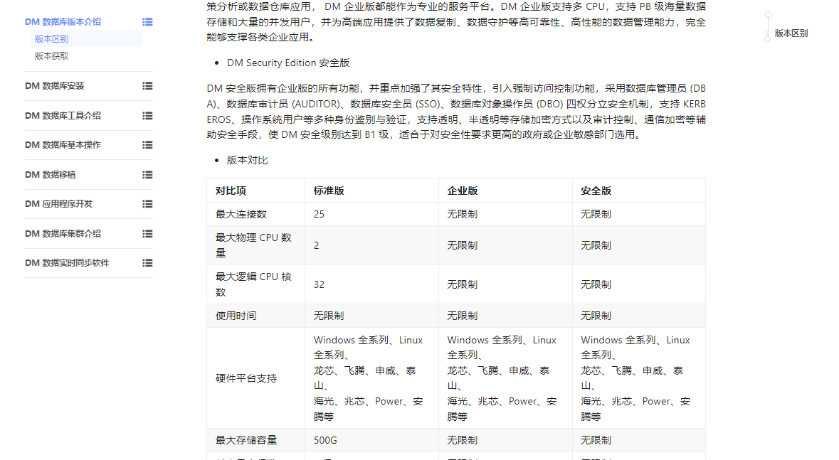 达梦数据库支持在多个平台部署,摘取部分信息如下,详细可以去该链接了解https://eco.dameng.com/document/dm/zh-cn/start/dm-version-differences.html