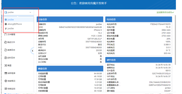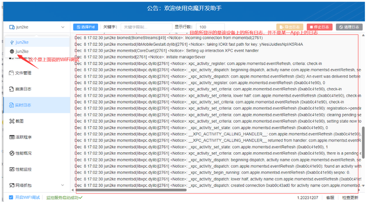 针对iOS设备,通过克魔助手工具可以实时查看设备的日志信息,并对APP的崩溃日志进行符号化、格式化和分析。以下是操作步骤: