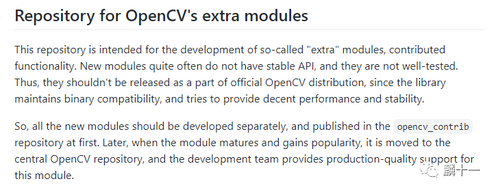 下图是opencv_contrib在GitHub页面中的简介(https://github.com/opencv/opencv_contrib)