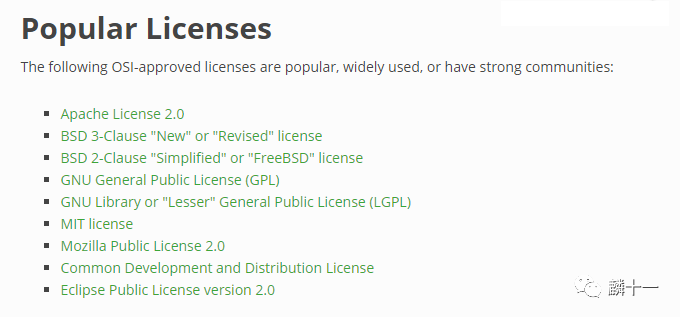 比较流行的许可证(来自官网截图)