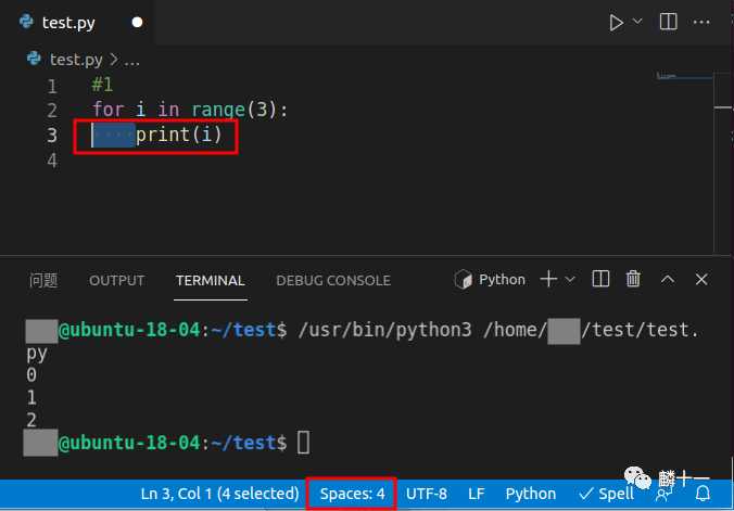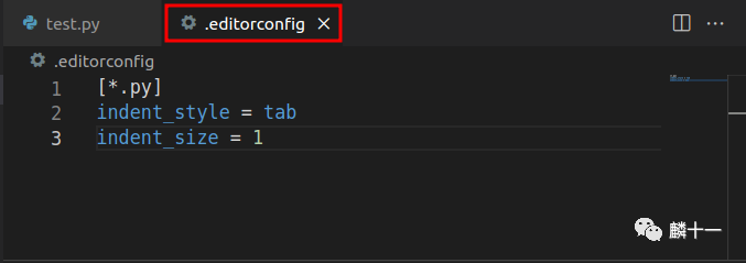 保存.editorconfig之后,返回test.py,继续写代码的时候会发现缩进格式已经变成了1个Tab(Tab Size: 1):