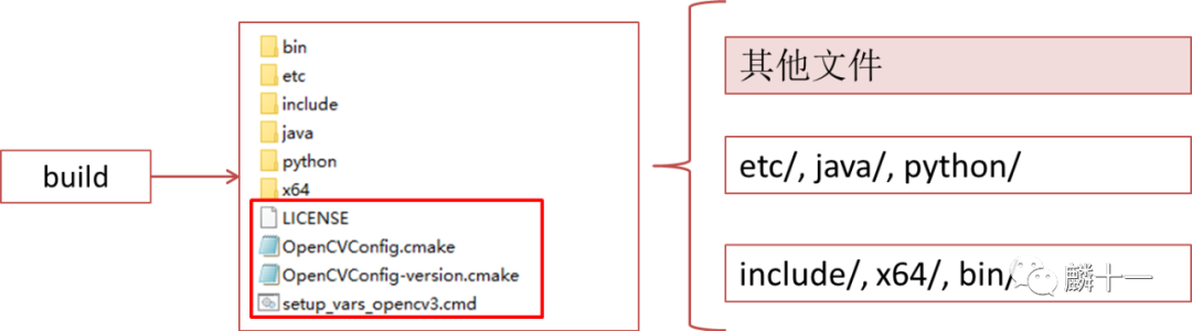 OpenCVConfig.cmake定义了一些变量,例如OpenCV_VERSION(版本号)、OpenCV_INCLUDE_DIRS(头文件目录)等,OpenCVConfig-version.cmake中定义了OpenCV的版本信息。