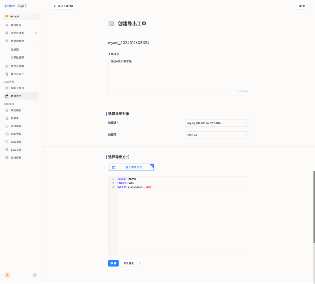 创建导出工单
