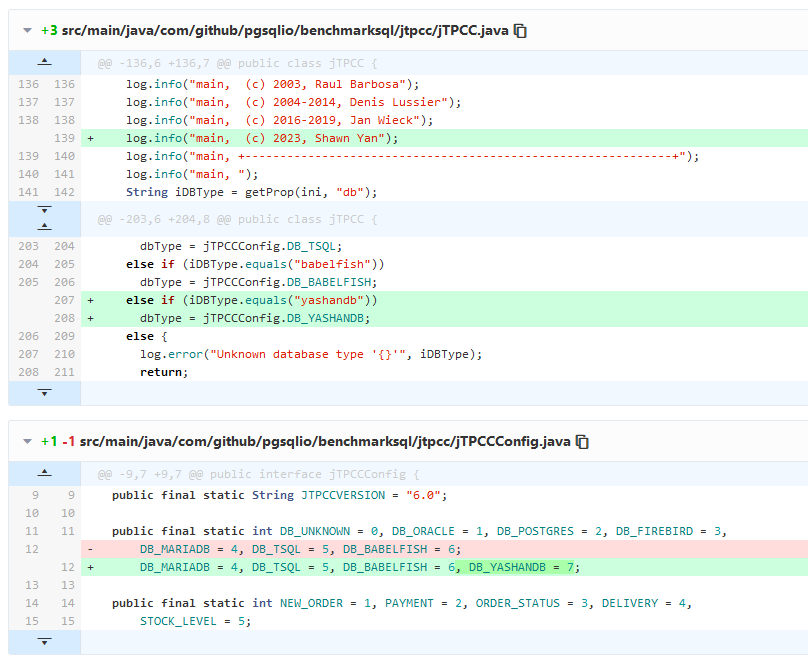 $ git lg* 0ab7d4d - (HEAD -> yashandb, origin/yashandb) Support YashanDB. (4 hours ago) <ShawnYan>* 727d5e9 - (origin/master, origin/HEAD, shawnyan, master) Add config parameters to run only on a range of warehouses (12 months ago) <Jan Wieck>