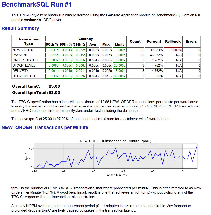 1.本文旨在打通 BanchmarkSQL 在 YashanDB 上的测试,而非正式压测,所以仓库数(warehouses)设置很低。