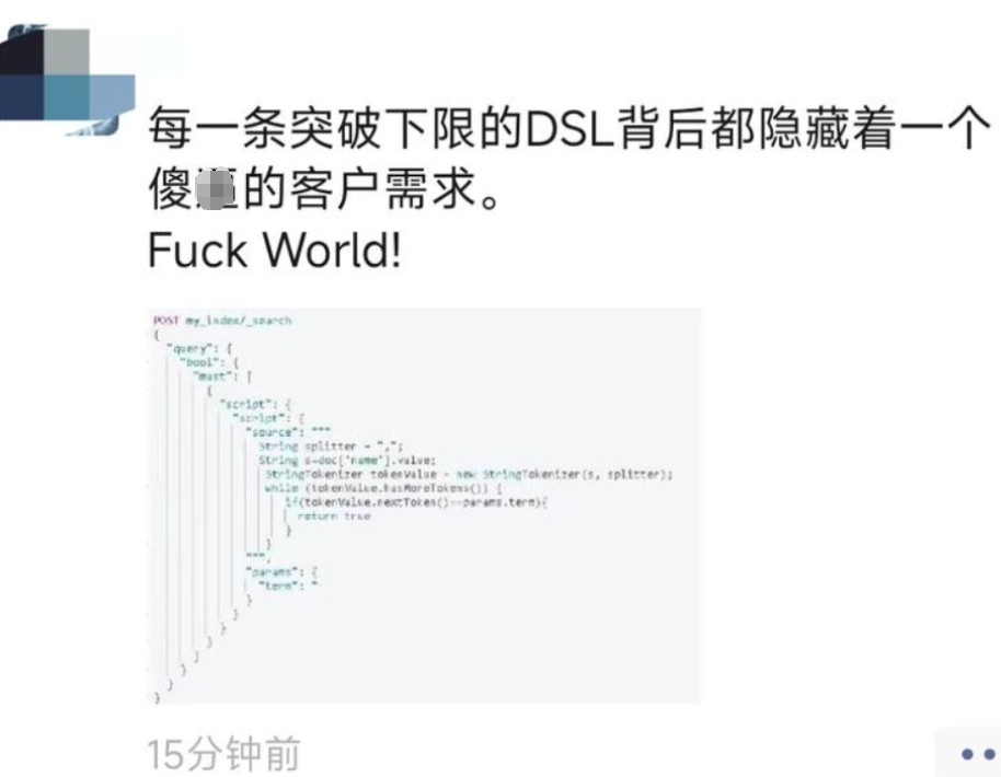 POST my_index_001/_search{"query": {"script": {"script": {"source": """def strArrray=doc['name'].value;def searchTerm = params.searchTerm;def parts=strArrray.splitOnToken(',');for (part in parts) {if (part.trim().equals(searchTerm)) {return true;}}return false;""","params": {"searchTerm": "一局"}}}}}