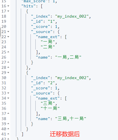 PUT my_index_002{"settings": {"default_pipeline":"split_pipeline_0126"},"mappings": {"properties": {"name": {"type": "keyword"},"name_ext": {"type": "text","fields": {"keyword": {"type": "keyword","ignore_above": 256}}}}}}POST _reindex{"source": {"index": "my_index"},"dest": {"index": "my_index_002"}}POST my_index_002/_search