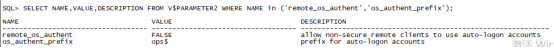 SELECT NAME,VALUE,DESCRIPTION FROM V$PARAMETER2 WHERE NAME in ('remote_os_authent','os_authent_prefix');