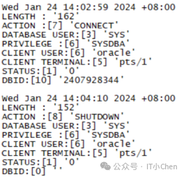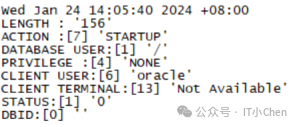 此数据存储在操作系统审计跟踪中,因为数据库审计跟踪在成功完成启动后才可用。