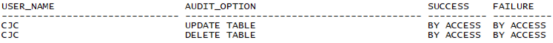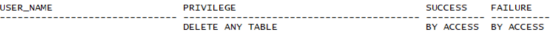 例如,AUDIT TABLE审计CREATE TABLE、TRUNCATE TABLE、COMMENT ON TABLE和DELETE[FROM]TABLE语句。