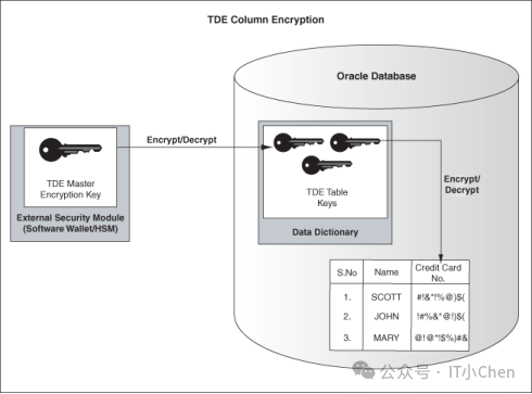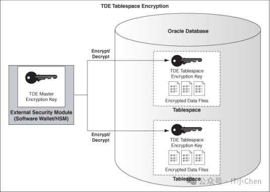 TDE主密钥存储在外部安全模块(Oracle钱包或HSM)中。