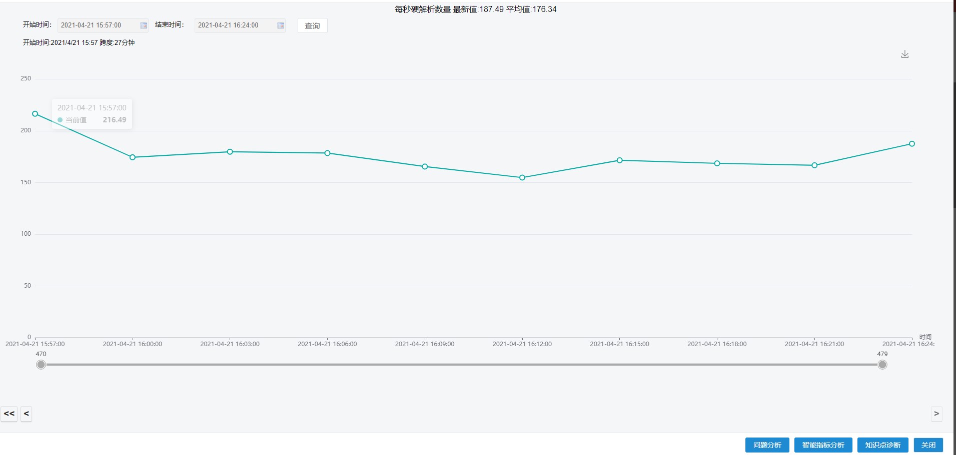 系统的每秒硬解析那么高,不过这个问题分析起来很头痛,如果在传统的运维模式下,可能会放到后面去分析,等到其他方面找不到问题了再去啃这个硬骨头。不过在AIOPS的支持下,分析一个问题也就是点击一下按钮而已了,我们可以很任性的进行下钻分析。