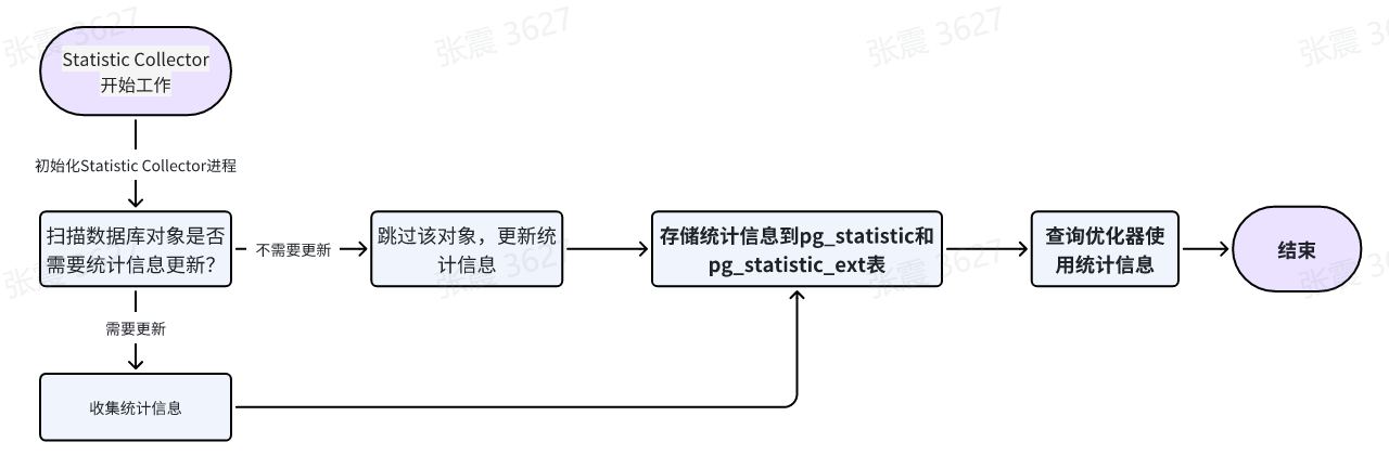d. 统计信息存储:Statistic Collector将收集到的统计信息存储在系统表pg_statistic和pg_statistic_ext中。这些表包含了每个数据库对象的详细统计信息,以及一些全局统计信息。