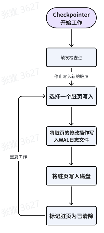 b. 写入脏页:一旦检查点被触发,Checkpointer开始将脏页(已被修改但尚未写入磁盘)写入磁盘。脏页是指在内存中已被修改的数据页。