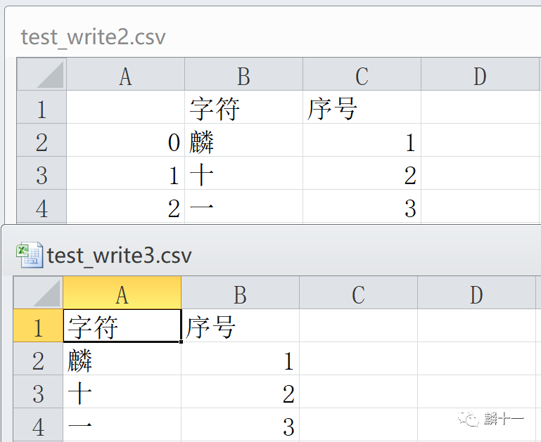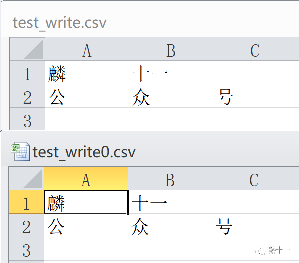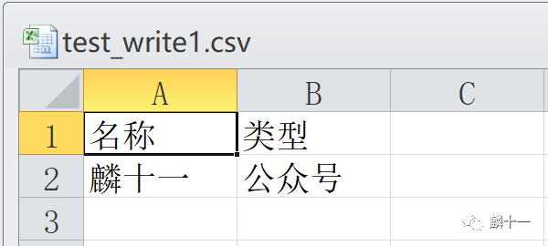 11 csvWriter.writerows([['麟', '十一'], '公众号'])