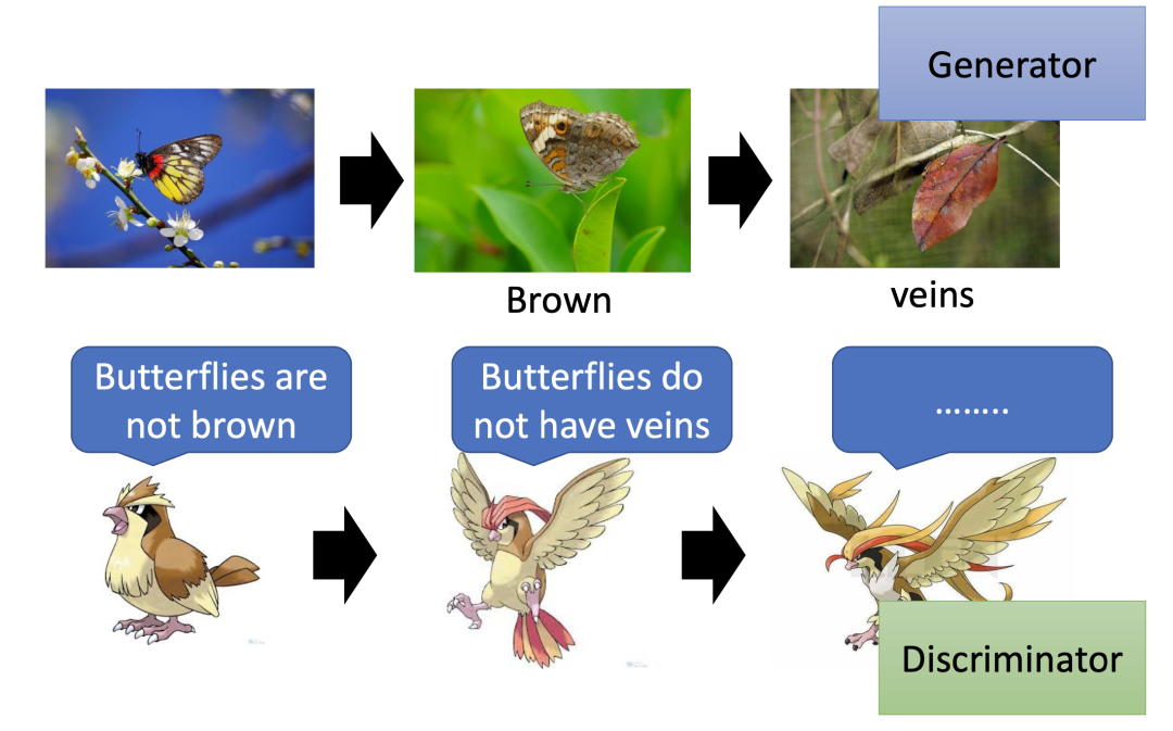 GAN 的概念,比较像是久远历史中的生物进化。比如,生成器就像是蝴蝶的演化,而判别器更像是蝴蝶的天敌——鸟类的进化 :