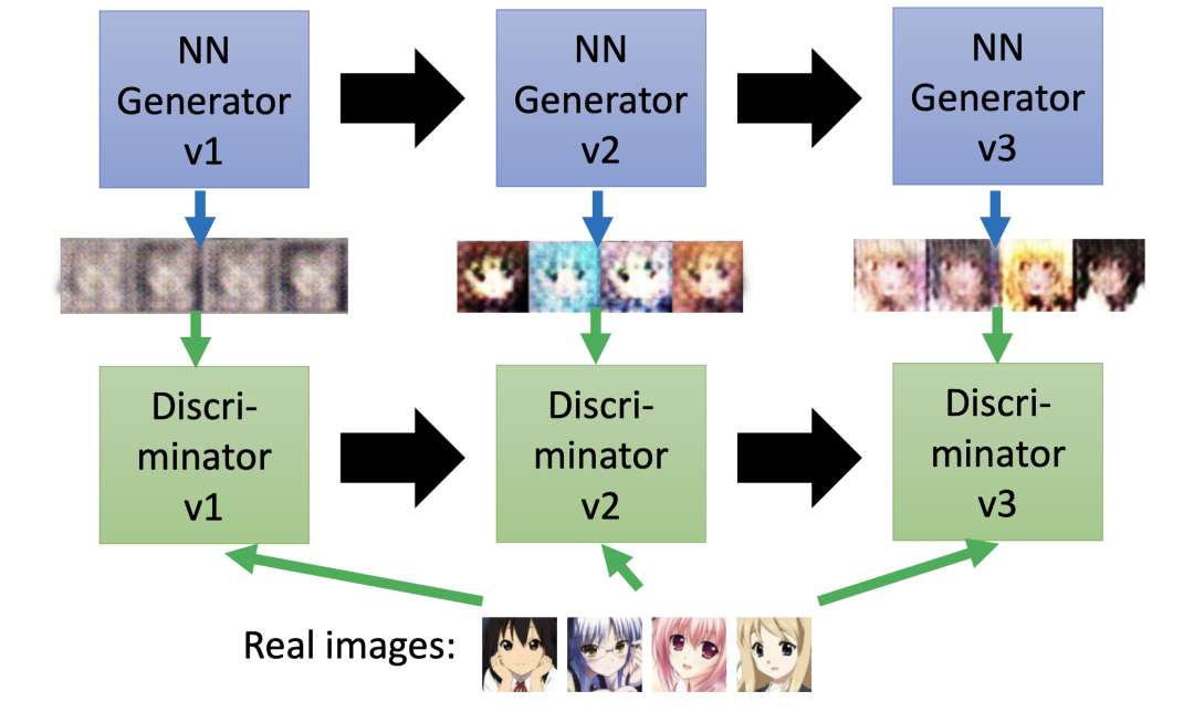 在上一步学出一个判别器后,我们需要用判别器去做生成一堆它判定为高分的图片,再将这些图片作为负样本重复整个迭代过程。