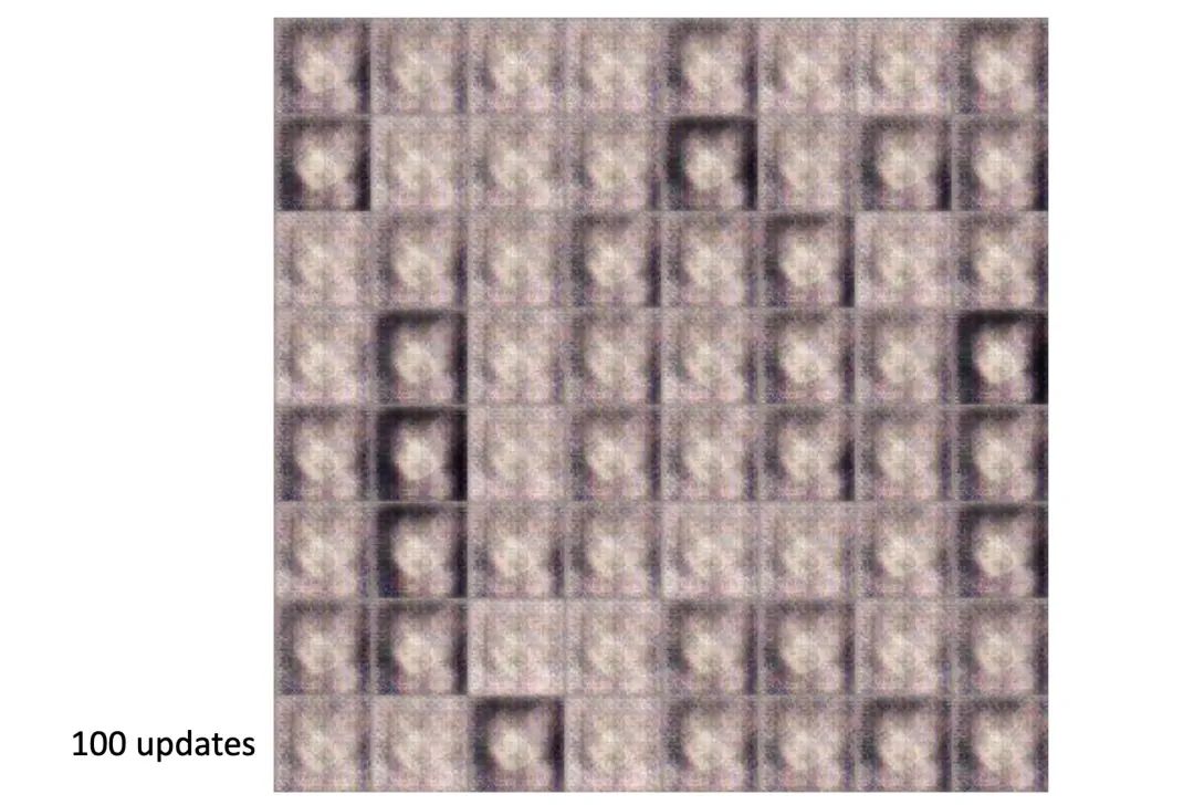 GAN 的生成器网络和判别网络的初始参数是随机的。生成网络一开始并不知道如何产生动漫头像,于是它只能随便生成一些看起来奇怪的东西。