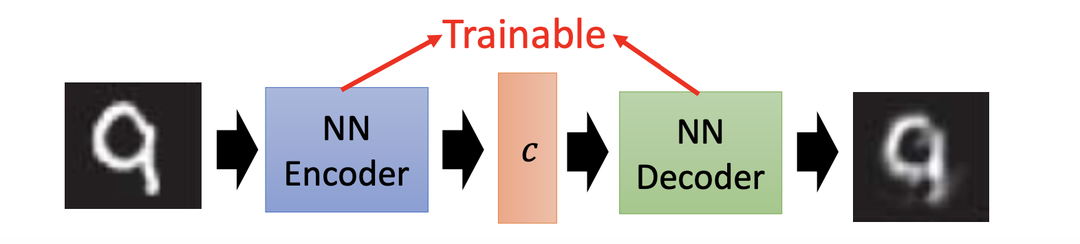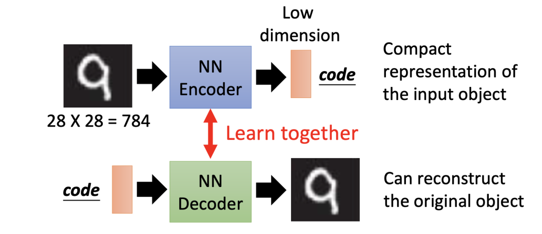 为了确保编码器的输出可靠,我们还要使其输出编码通过一个译码器(Decoder)后得到一张输出图片。通过对比译码器的输出图片和原始图片,反复调整编码器神经网络的参数。在这一过程中,编码器和译码器同步学习,我们将整个结构称为自动编码器(Auto-Decoder)。