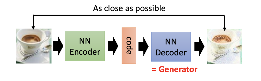 通过反复训练,我们就能得到一个完整的自动编码器。在自动编码器中,它的译码器部分其实就相当于一个生成器。