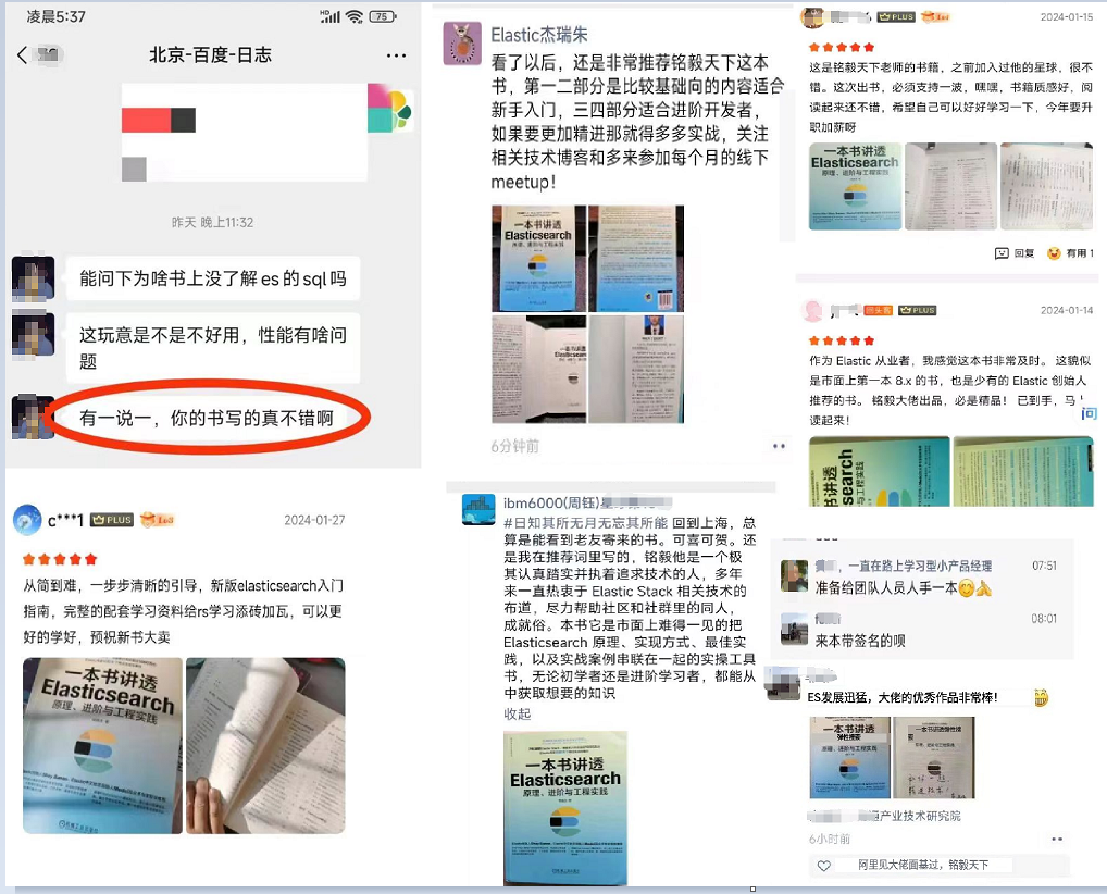 这块,我为了做好同行书籍调研工作,几乎自费买下了所有市面上的 Elasticsearch 相关书籍,确保:知彼知己。