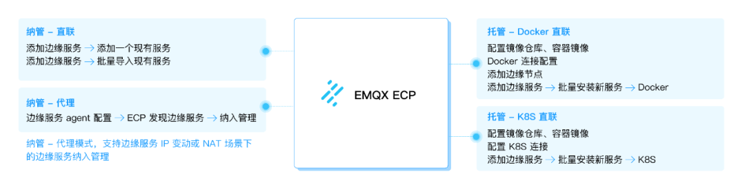 EMQX ECP 是一款面向工业 4.0 的工业互联数据平台,旨在满足工业场景大规模数据采集、处理、分析和存储的需求。ECP 提供边缘服务的快速部署、远程操作和集中管理等功能,助力工业领域数据互联互通,实现数据驱动的生产和运营。