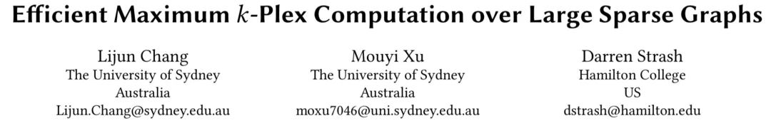 本周推荐的是发表于VLDB 2023的论文:Eficient Maximum -Plex Computation over Large Sparse Graphs,该文提出一种算法求解最大k-plex,作者来自悉尼大学和汉密尔顿学院。