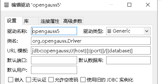 URL模板:jdbc:opengauss://{host}[:{port}]/[{database}]2.库中添加驱动文件