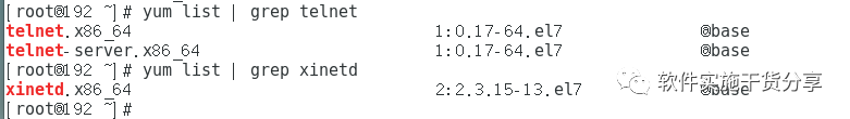 [root@192 ~]# rpm -qa | grep telnettelnet-0.17-64.el7.x86_64telnet-server-0.17-64.el7.x86_64[root@192 ~]# rpm -qa | grep xinetdxinetd-2.3.15-13.el7.x86_64[root@192 ~]#