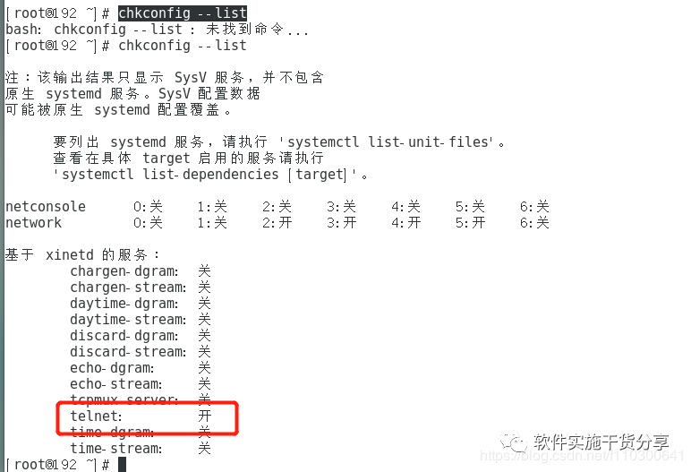 ③telnet服务默认是不开启的,修改文件/etc/xinetd.d/telnet来开启服务