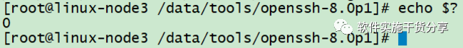 [root@linux-node3 ~]# ssh -VOpenSSH_8.0p1, OpenSSL 1.0.2r 26 Feb 2019[root@linux-node3 ~]#[root@linux-node3 ~]# telnet 127.0.0.1 22Trying 127.0.0.1...Connected to 127.0.0.1.Escape character is '^]'.SSH-2.0-OpenSSH_8.0