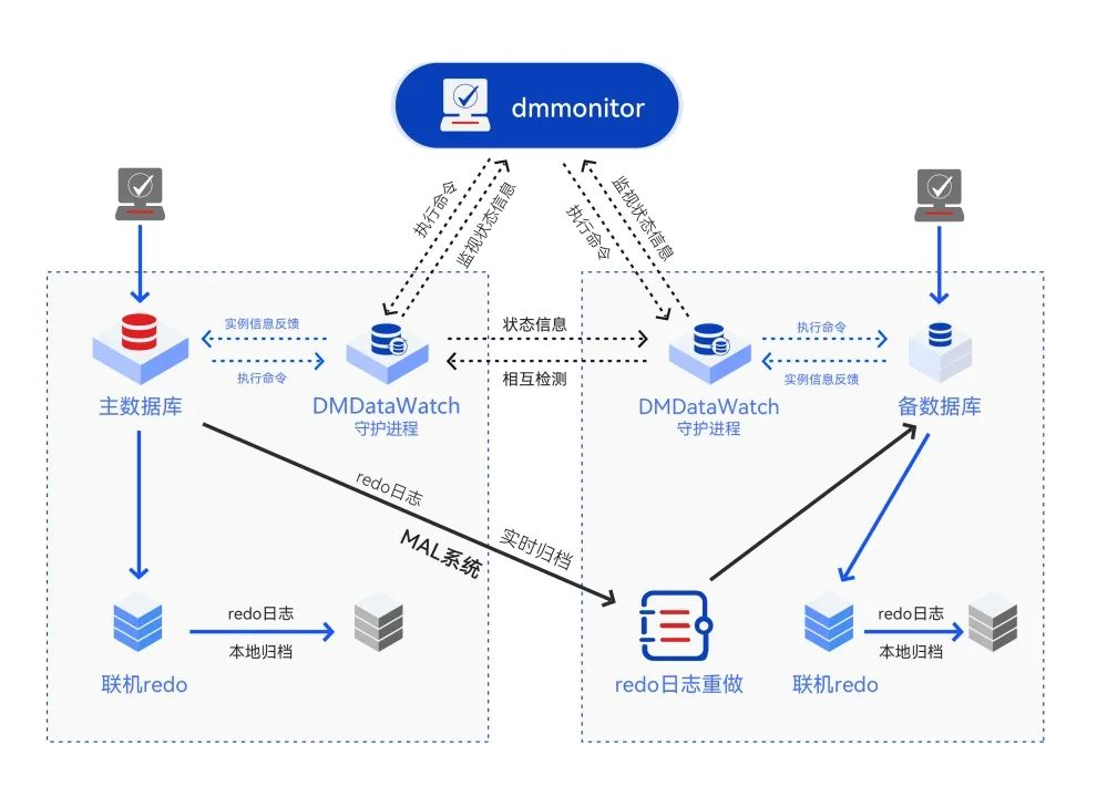 通过达梦柔性迁移解决方案,新系统实现了底层数据库从国外产品到达梦数据库的平滑迁移、迭代升级。项目前期采用达梦主备集群到国外数据库的双向同步架构,平稳运行一段时间后应用完全移植到达梦主备集群上。在达梦数据库的支撑下,新系统可实现节点故障切换,提供不间断数据库服务,高效满足用户对数据库安全性和高可用性的需求。