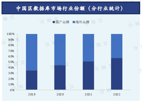 国内数据库厂商加速追赶国际龙头,基础研究方面,不断诞生创新理论,技术突破方面,实现了多个关键技术点上的重要突破,产业基本具备了关键技术研发能力,正在形成正面竞争力;整个数据库产业呈现出百花齐放、百家争鸣的局面:整体以关系型数据库为主,非关系型数据库为辅,发展路线多样,分布式、云化等数据库产品热度持续高涨;同时,国内数据库采购量大幅提高,市场规模稳定增长,已经具备在各行业核心场景“商用”的基础。2022年国产数据库市场份额已经由2019年的35%提升到了57%。