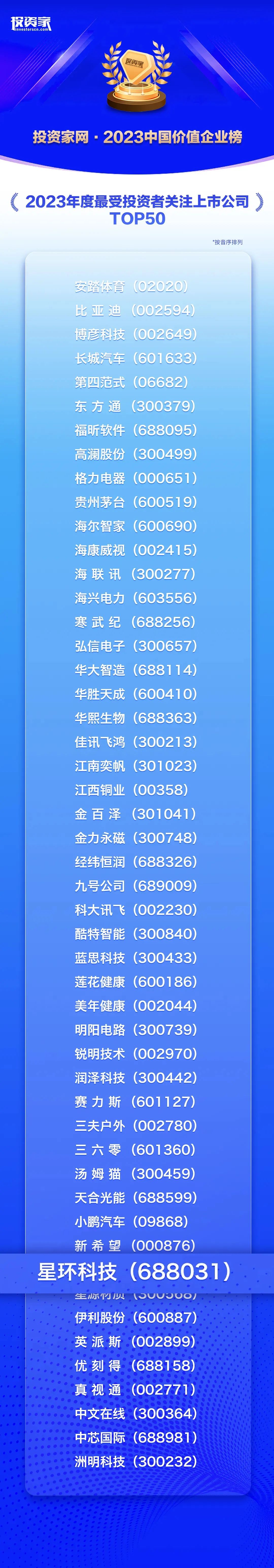 近日,投资家网旗下投资家研究院“投资家网·2023中国价值企业榜”评选结果重磅发布,星环科技荣登“2023年度最受投资者关注上市公司TOP50”榜单。