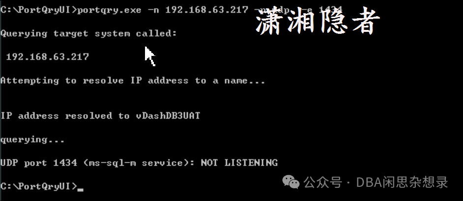 portqry.exe -n 192.168.63.217 -p udp -e 1434