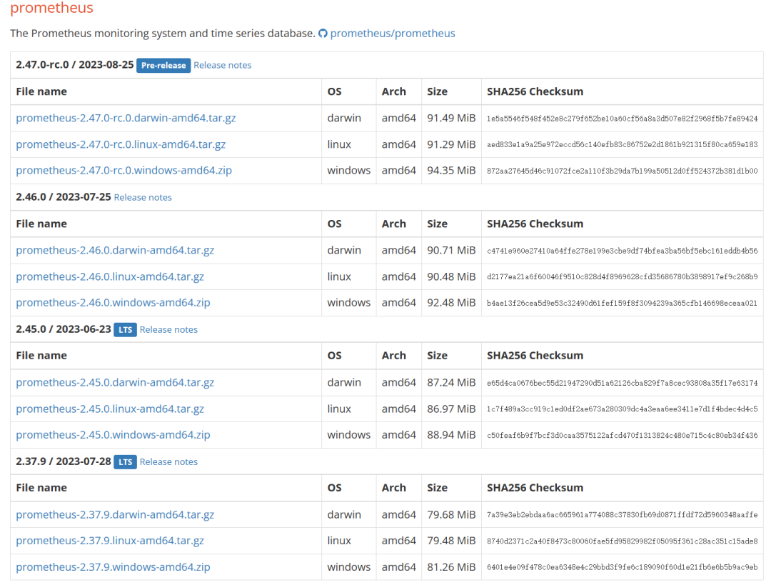 这里选择二进制软件包prometheus-2.45.0.linux-amd64.tar.gz