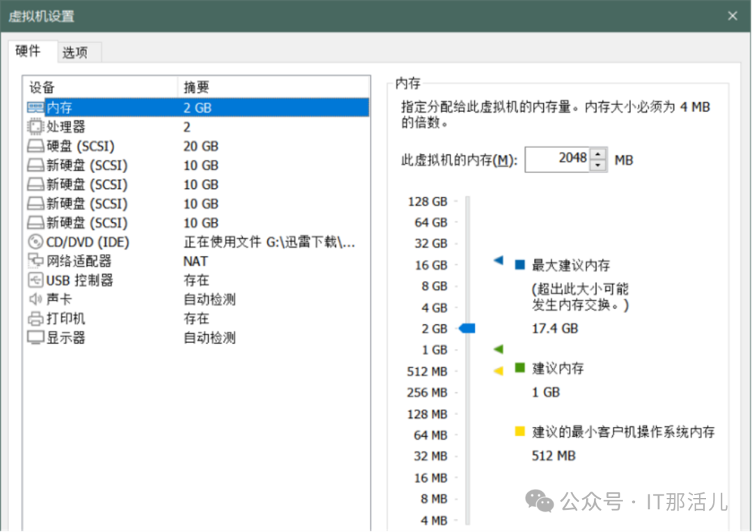在Vmware虚拟机上新添加四块硬盘。如下图所示:3.3 LVM创建PV、VG和LV