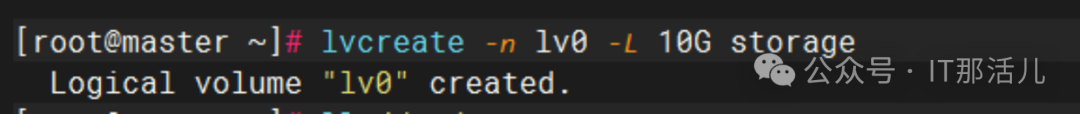 - lvcreate -n lv0 -L 10G storage