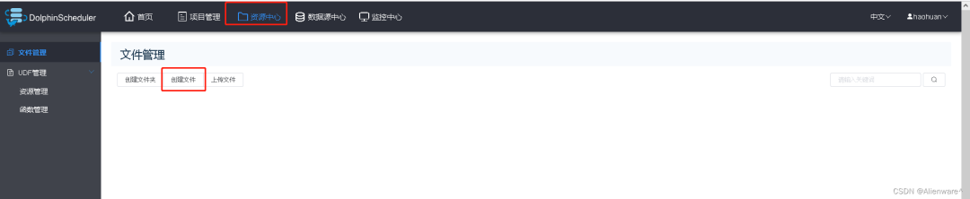 1)点击资源中心,点击创建文件