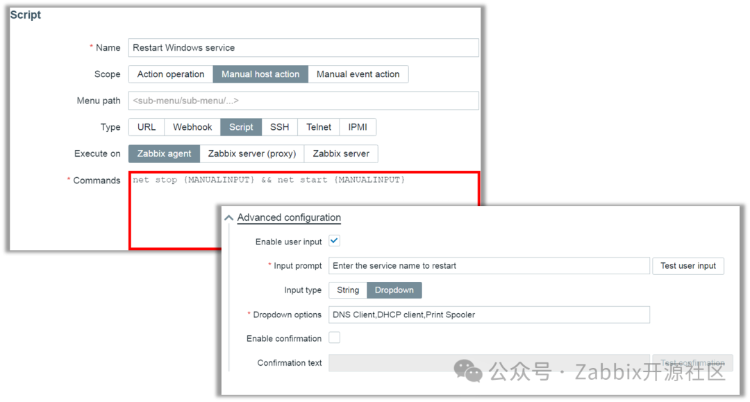Zabbix7.0在执行前端脚本时可以输入参数,这样就不需要创建多个前端脚本或者频繁修改某个前端脚本。在脚本中使用{MANUALINPUT}宏引用自定义输入的数据。