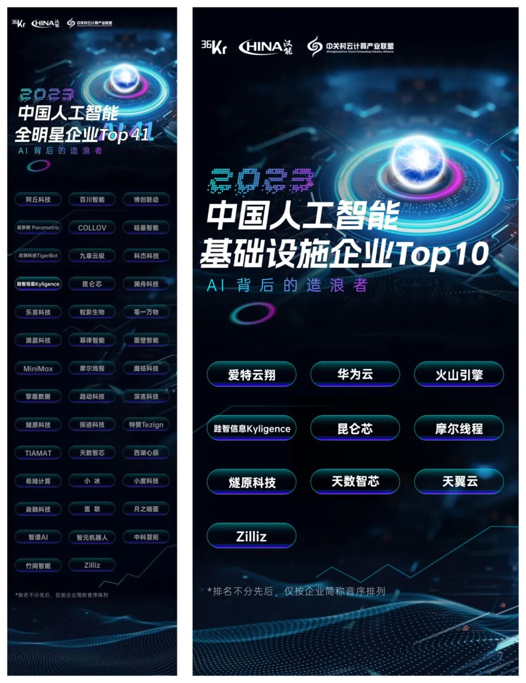 「AI41人工智能全明星企业」由36氪、汉能投资及中关村云计算产业联盟联合发起,Kyligence 入选“2023中国人工智能41人工智能全明星企业”、“2023中国人工智能基础设施企业Top10”榜单。