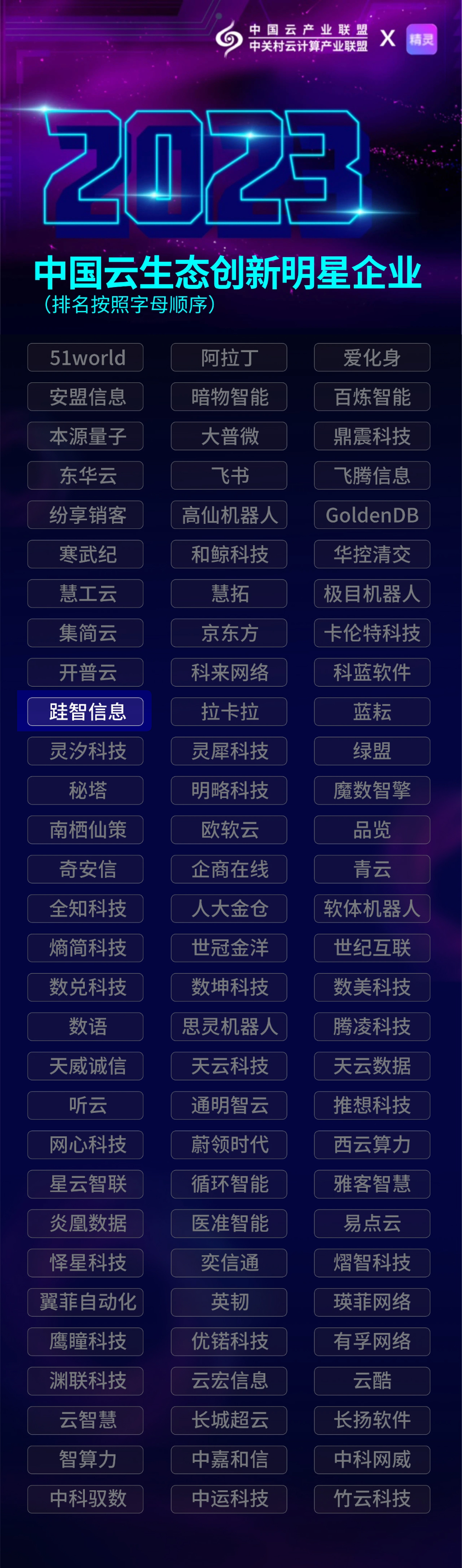 中国云产业联盟暨中关村云计算产业联盟推出“云生态百强企业”和“云生态创新明星企业”榜单,跬智信息(Kyligence)入围深耕专业赛道、挑战创新高峰的“云生态创新明星企业”榜单。
