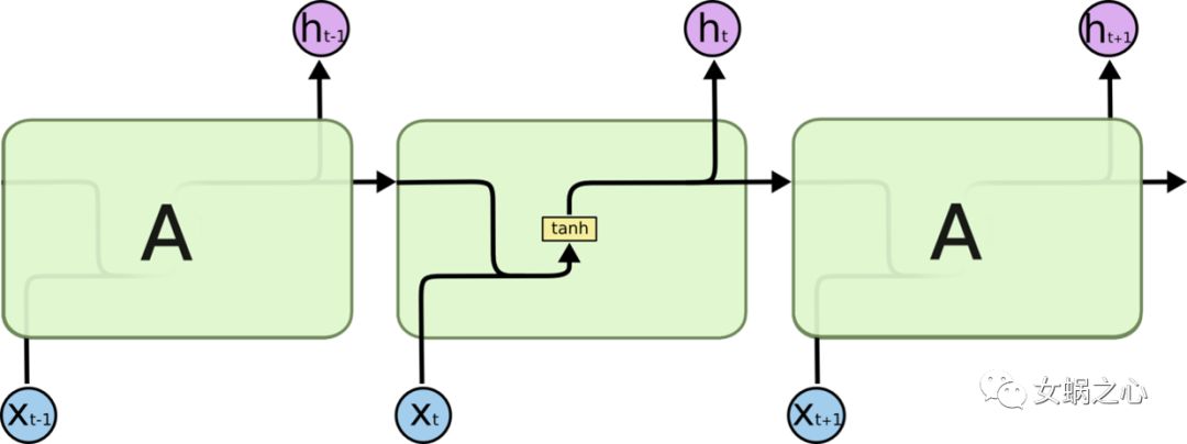 在标准的 RNN 中,这个重复的模块只有一个非常简单的结构